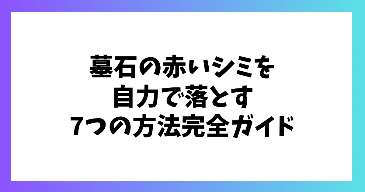 導入:墓石の赤いシミに悩む人へ — 本ガイドで得られること お墓参りのとき、ふと目に入る赤いシミ。「きれいにしてあげたいけど、自分で触って大丈夫かな…」「かえって傷つけてしまわないかな…」と、心配になる方はとても多いです。 大切なお墓だからこそ... -