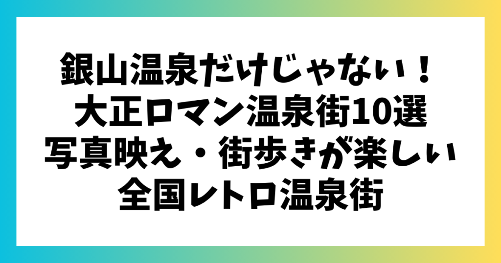 銀山温泉だけじゃない!大正ロマン温泉街10選【写真映え・街歩きが楽しい全国レトロ温泉街】