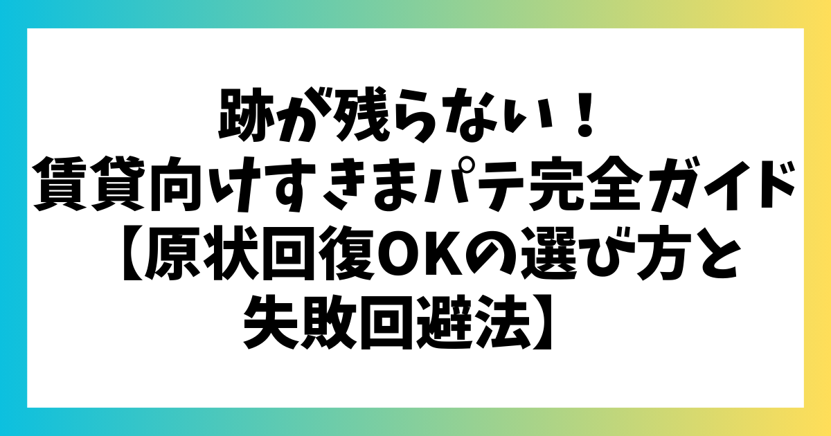 跡が残らない!賃貸向けすきまパテ完全ガイド【原状回復OKの選び方と失敗回避法】