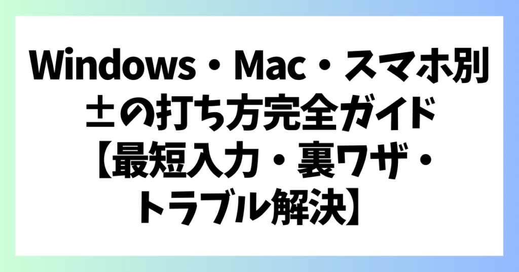 Windows・Mac・スマホ別|±の打ち方完全ガイド【最短入力・裏ワザ・トラブル解決】