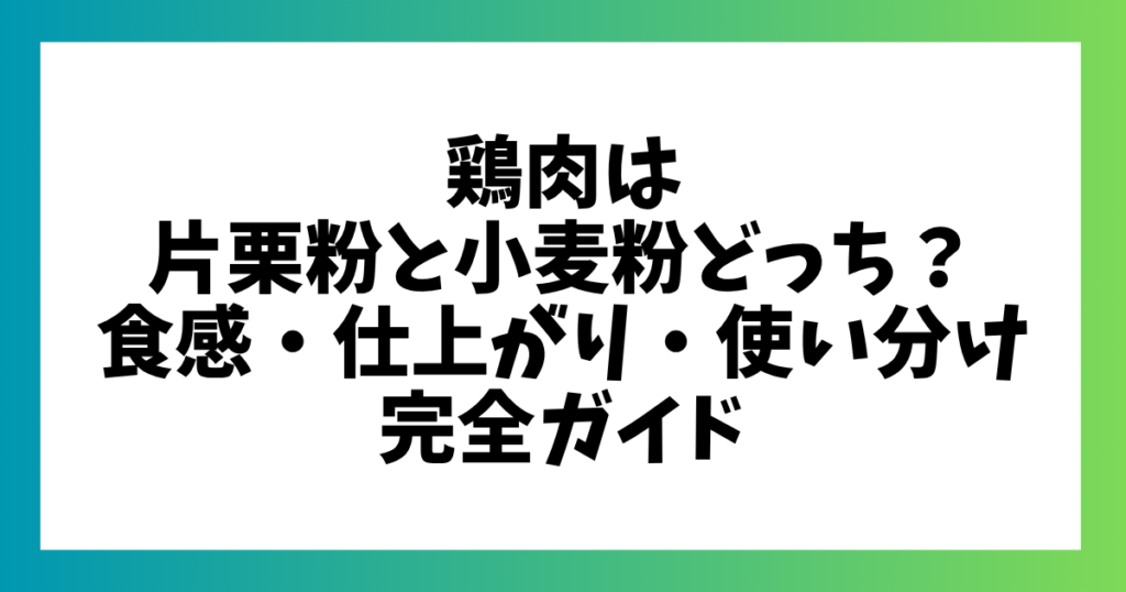 導入:鶏肉は片栗粉と小麦粉どっち?迷う人のための結論 「唐揚げを作るとき、片栗粉と小麦粉どっちがいいの?」そんなふうに迷ったことはありませんか? 実はこの2つ、仕上がりが大きく変わります。 この記事では、初心者の方でもわかりやすいように ・食... -
